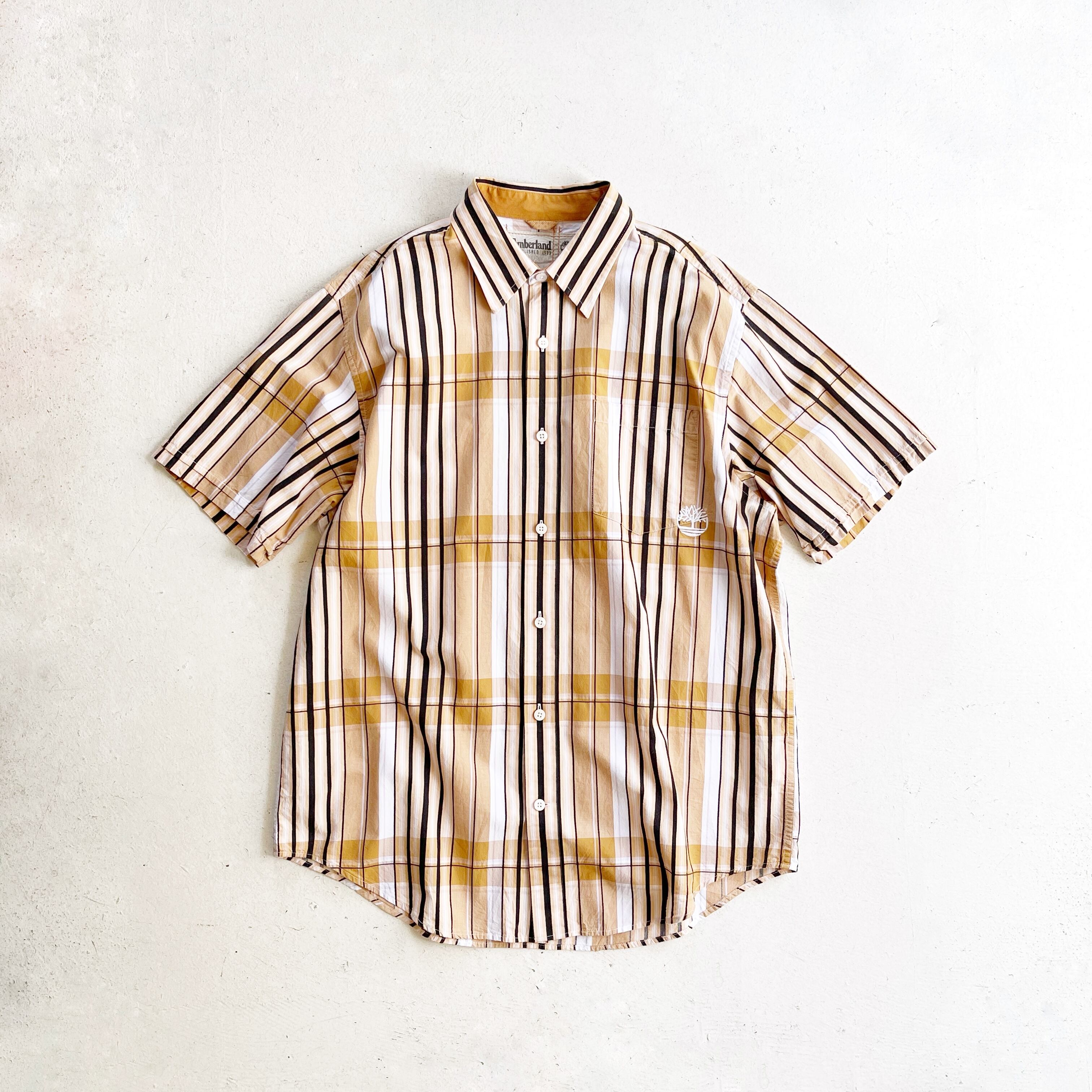 2000s Timberland Beige Check S/S shirt 【XL】
