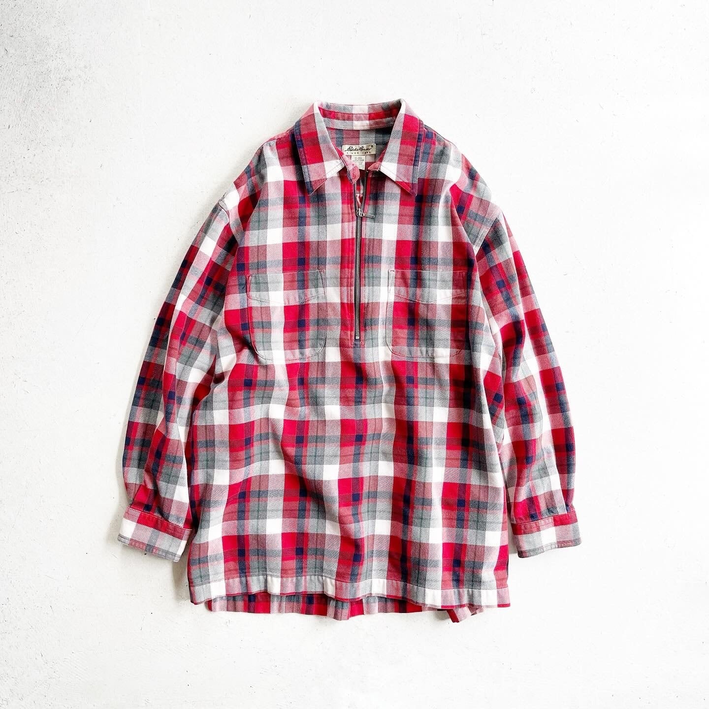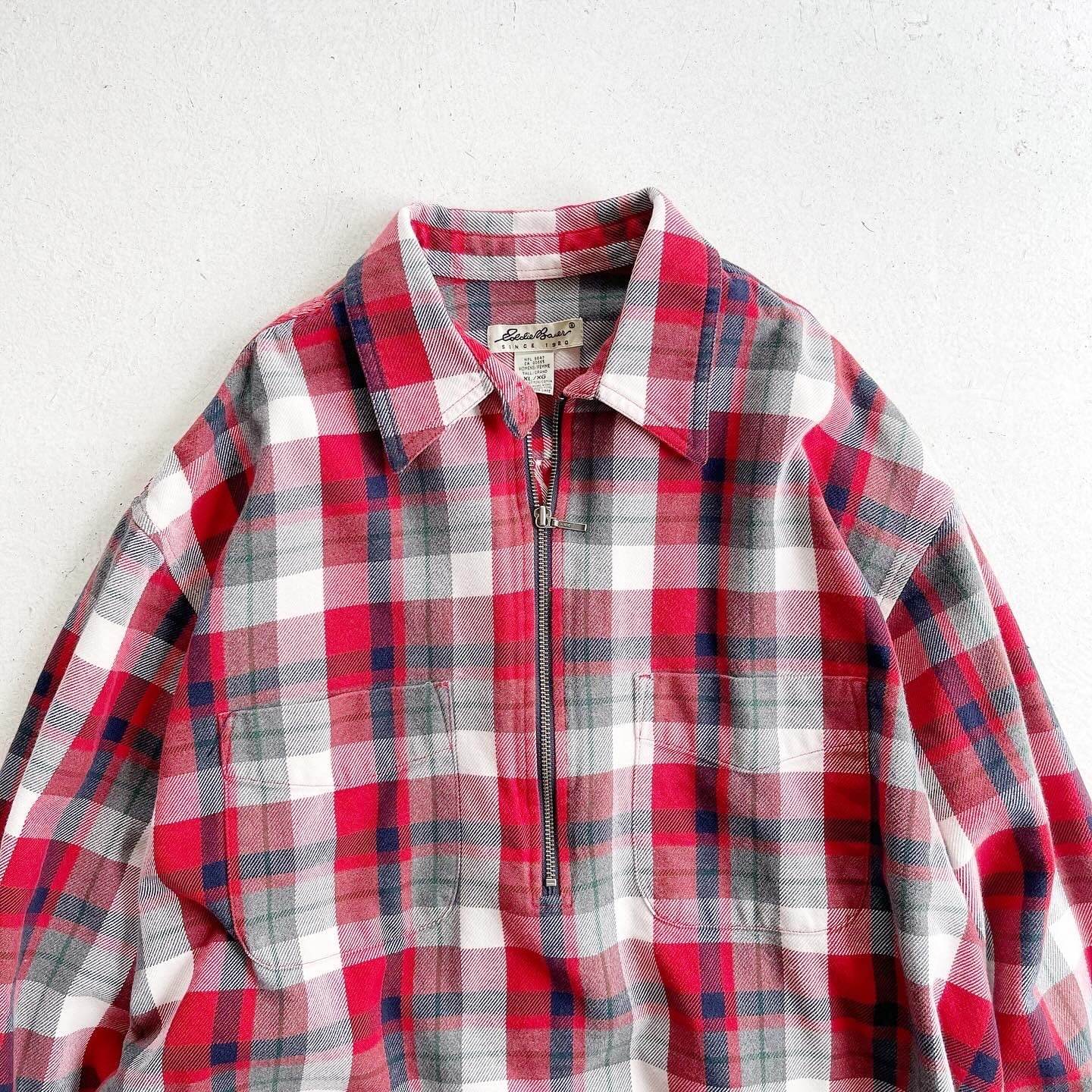 1990s Eddie Bauer Halh Zipup Flannel shirt 【XL】