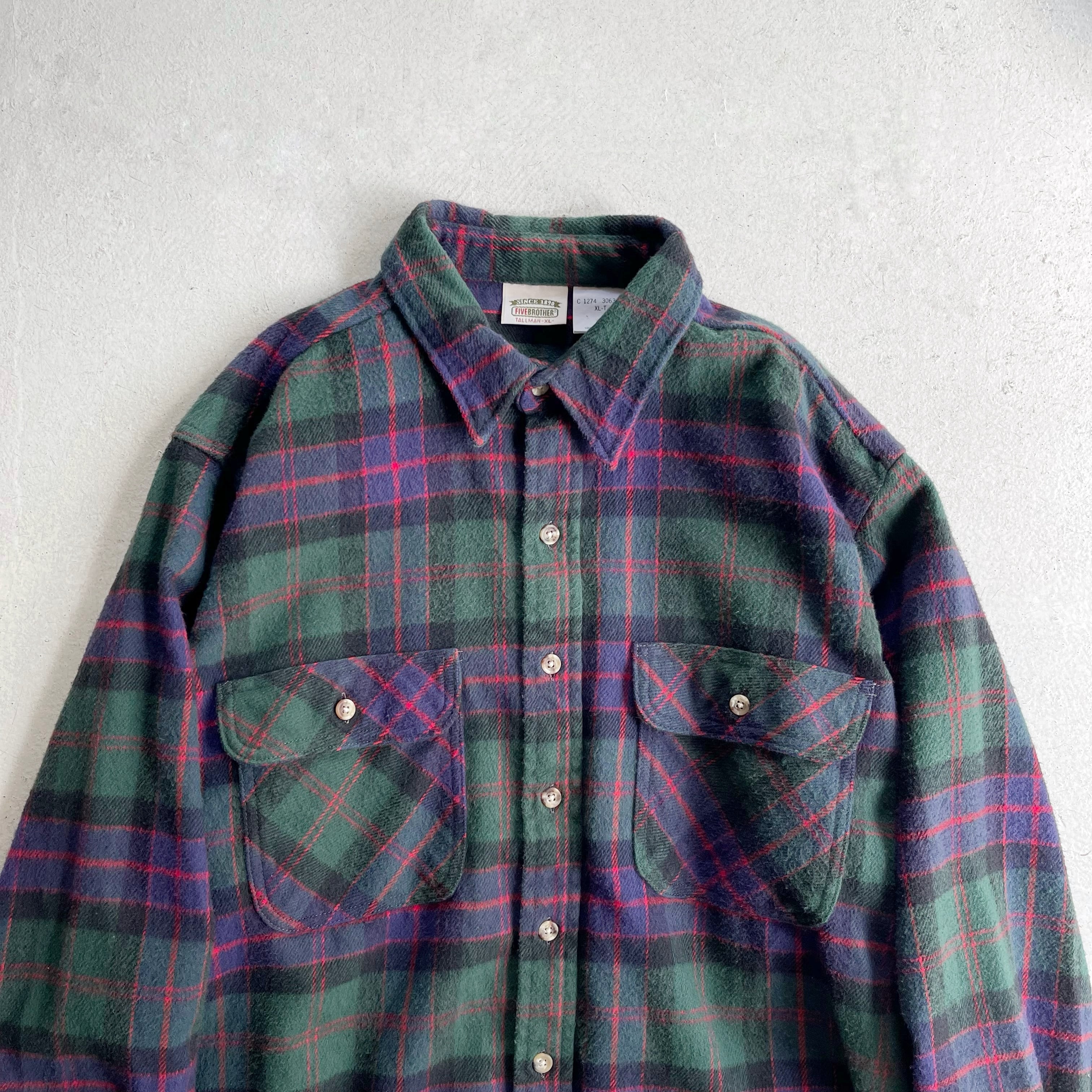 1990s FIVE BROTHER Heavy Flannel shirt Green×Purple check 【XL】