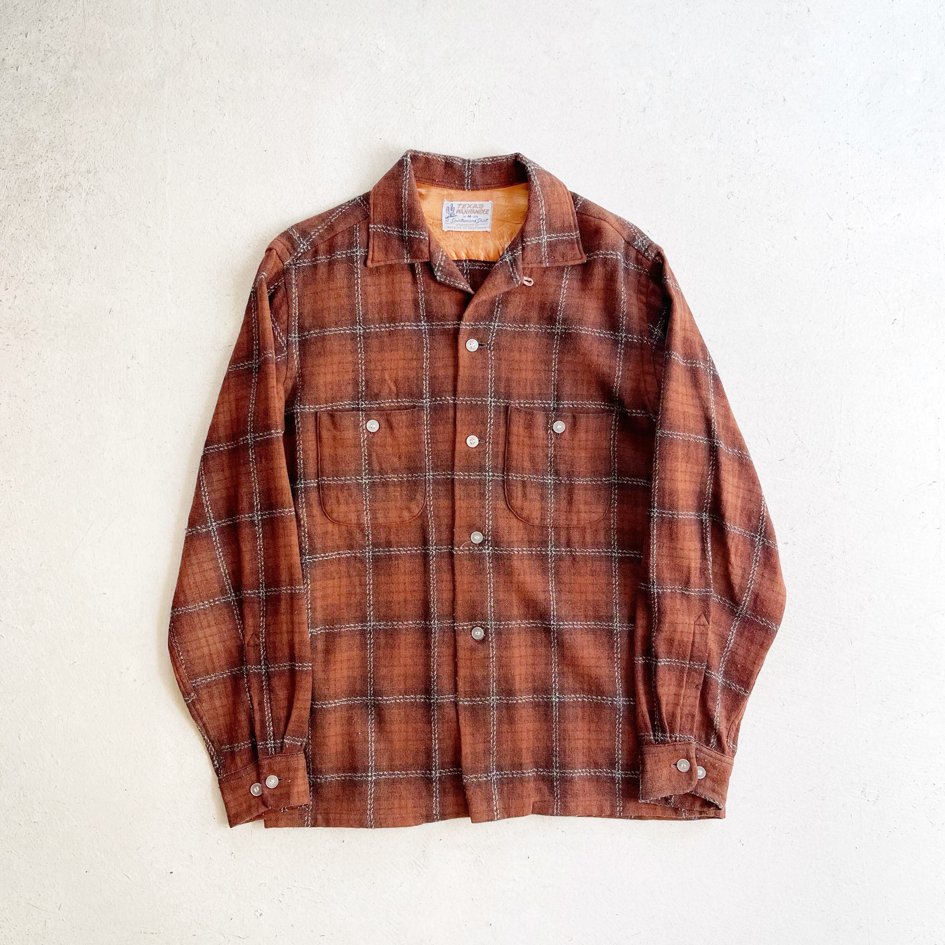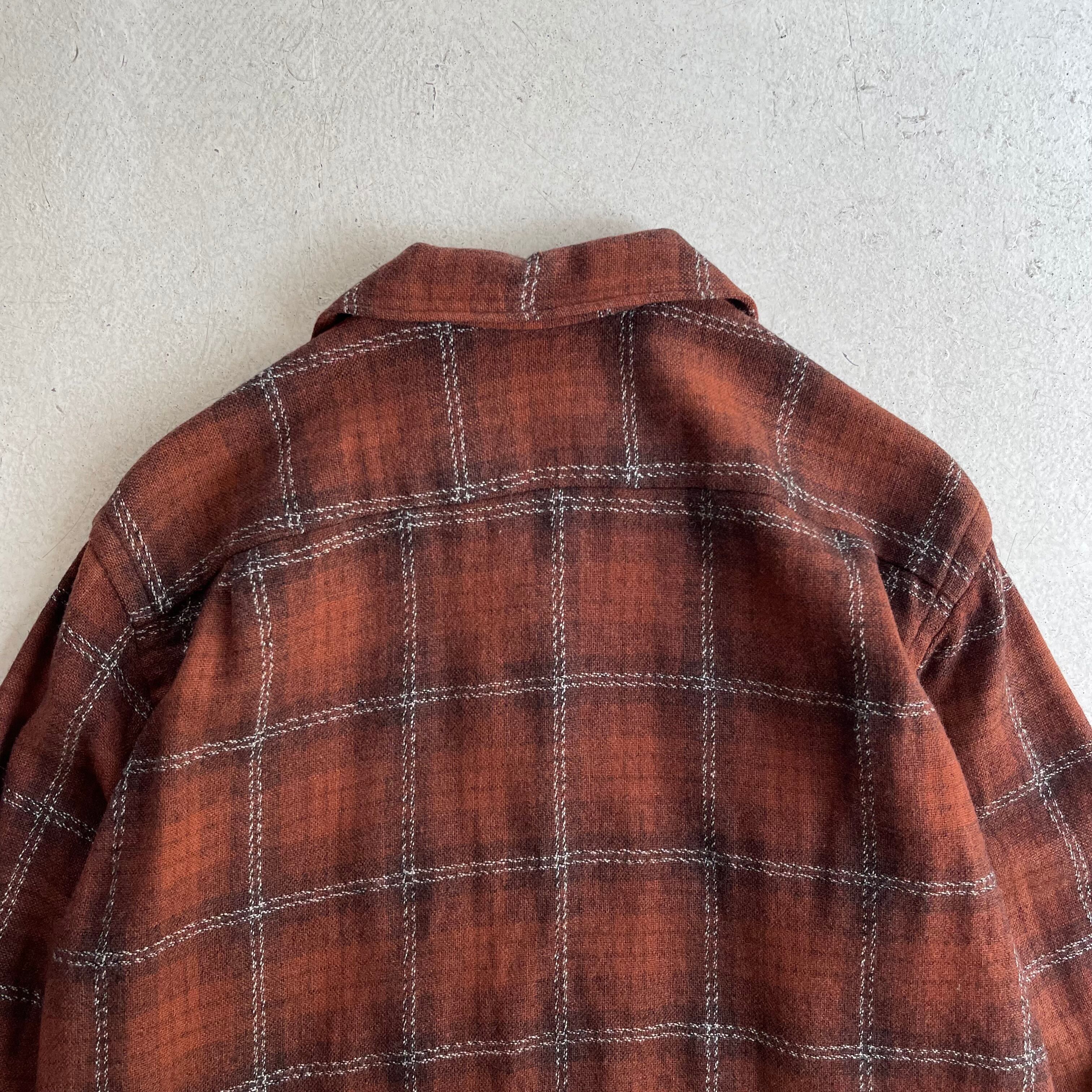 1950s Wool Opencollar shirt Brown Shadow Check【M 15 1/2】