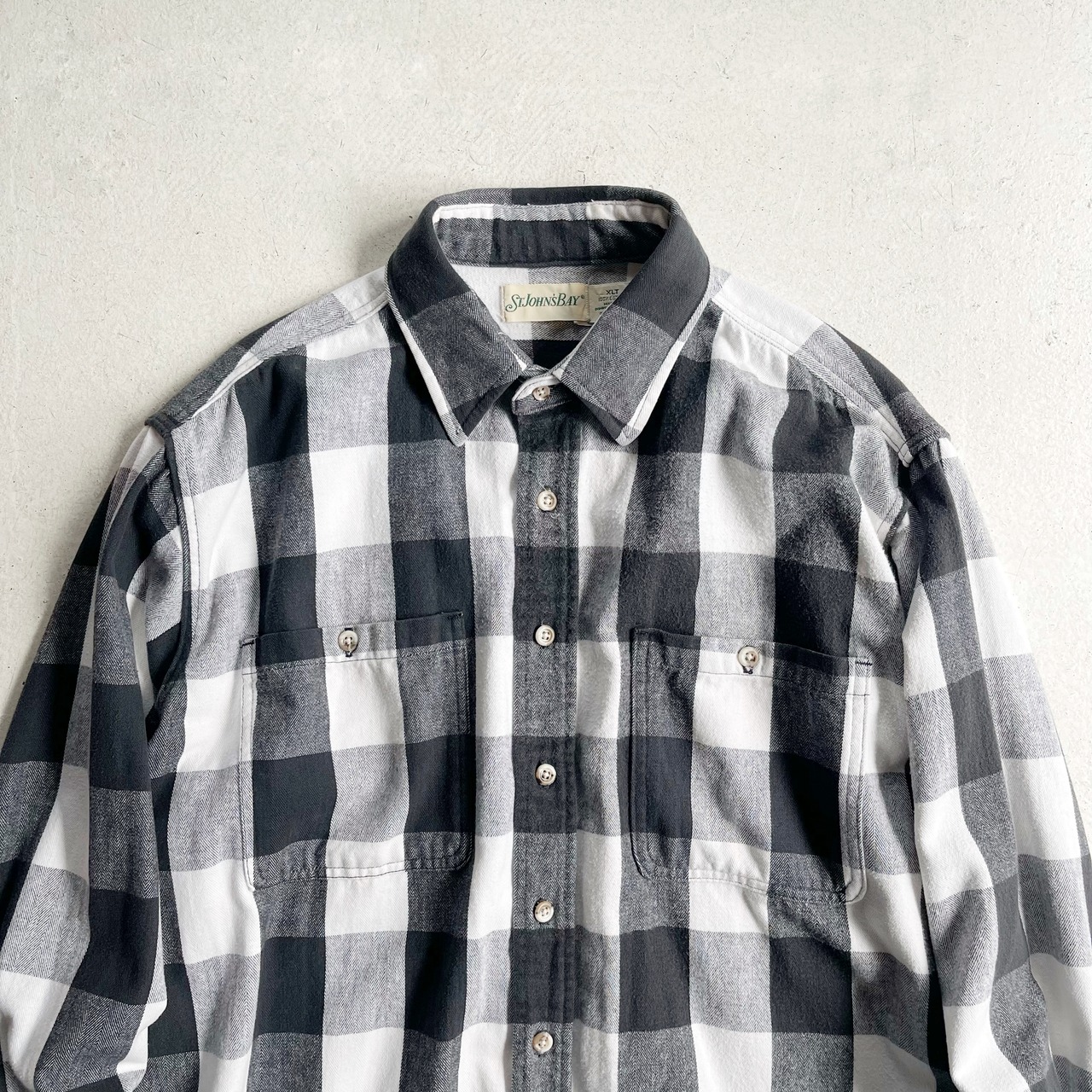 1980s ST JOHN'S BAY Monochrome Block Check Heavy Flannel shirt 【XLT】