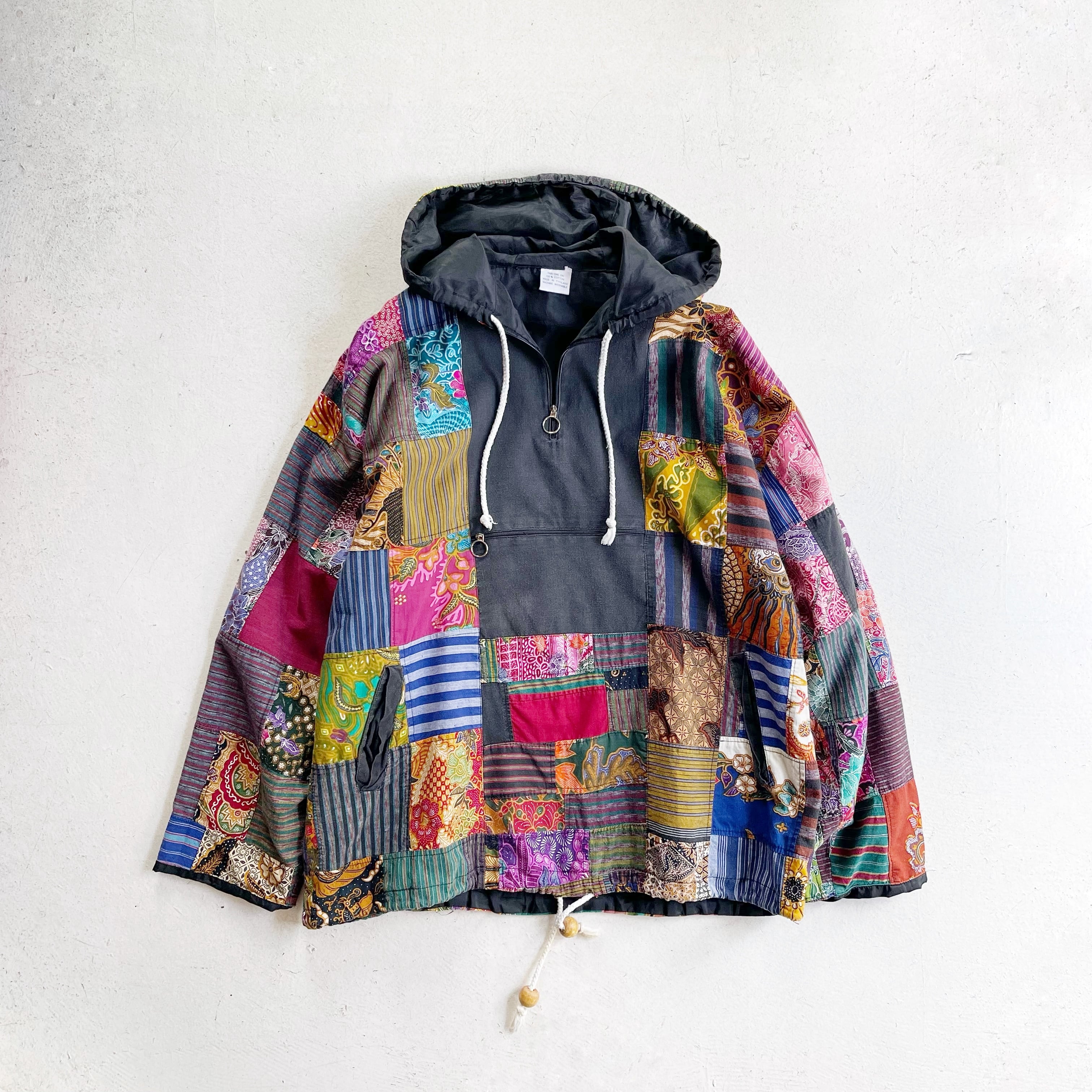 1980s ASIAN CRAZY PATCHWORK Half Zip Up Hoodie